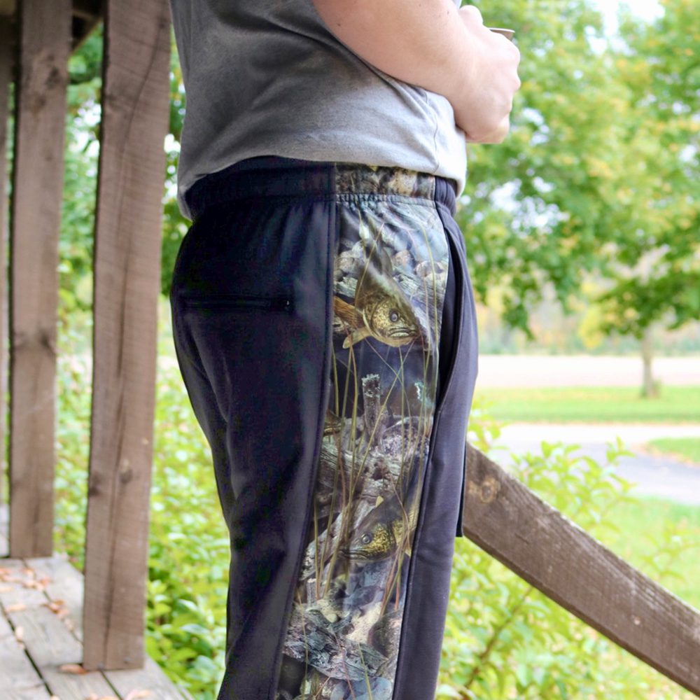 Ultimate Sweats. Signature performance interlock fleece with a soft and comfortable brushed interior. Premium grade elastic waist paired with extra-wide drawstrings for an easy-wearing, adjustable fit. Deep side seam pockets, zippered secure back right pocket, and zippered leg openings for an easy on/off over shoes or boots. Double-stitched tailoring. Moisture-wicking fabric with a UPF 40+ rating. Standard sweatpant (32”) inseam. Satisfaction guaranteed. Walleye/Black.