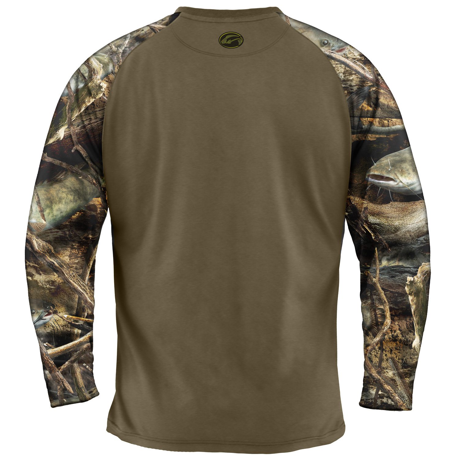 Lantern, Cut Bait and Current, all you really need for cats. Comfortable, performance interlock fabric paired with our relaxed, outdoorsman’s fit. Easy-wearing raglan long sleeves won’t bind with activity. Premium finish details include double-needle tailoring, locker panel, ribbed knit collar, popular self-cuff, taped shoulders and tagless collar. Also available in Short-Sleeve. Catfish/Earth.