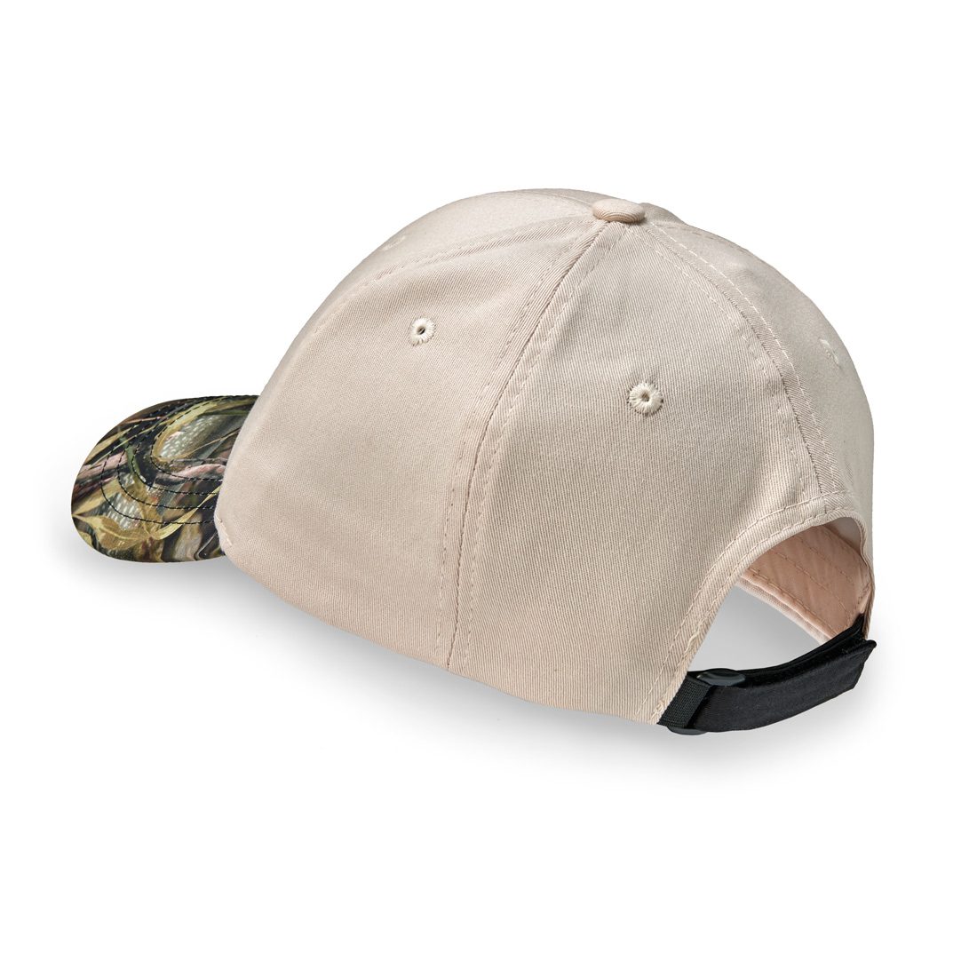 Durable cotton khaki paired with a Fishouflage accented visor (top and bottom) and classic, embroidered logo patch. Quality 6-panel construction in an easy-wearing, medium profile design. Adjustable Velcro-Closure with an Elastic Loop for just a little give for a perfect fit. Premium, moisture-wicking sweatband made right to keep you dry. Available in Bass, Walleye and Pike. One size fits most.