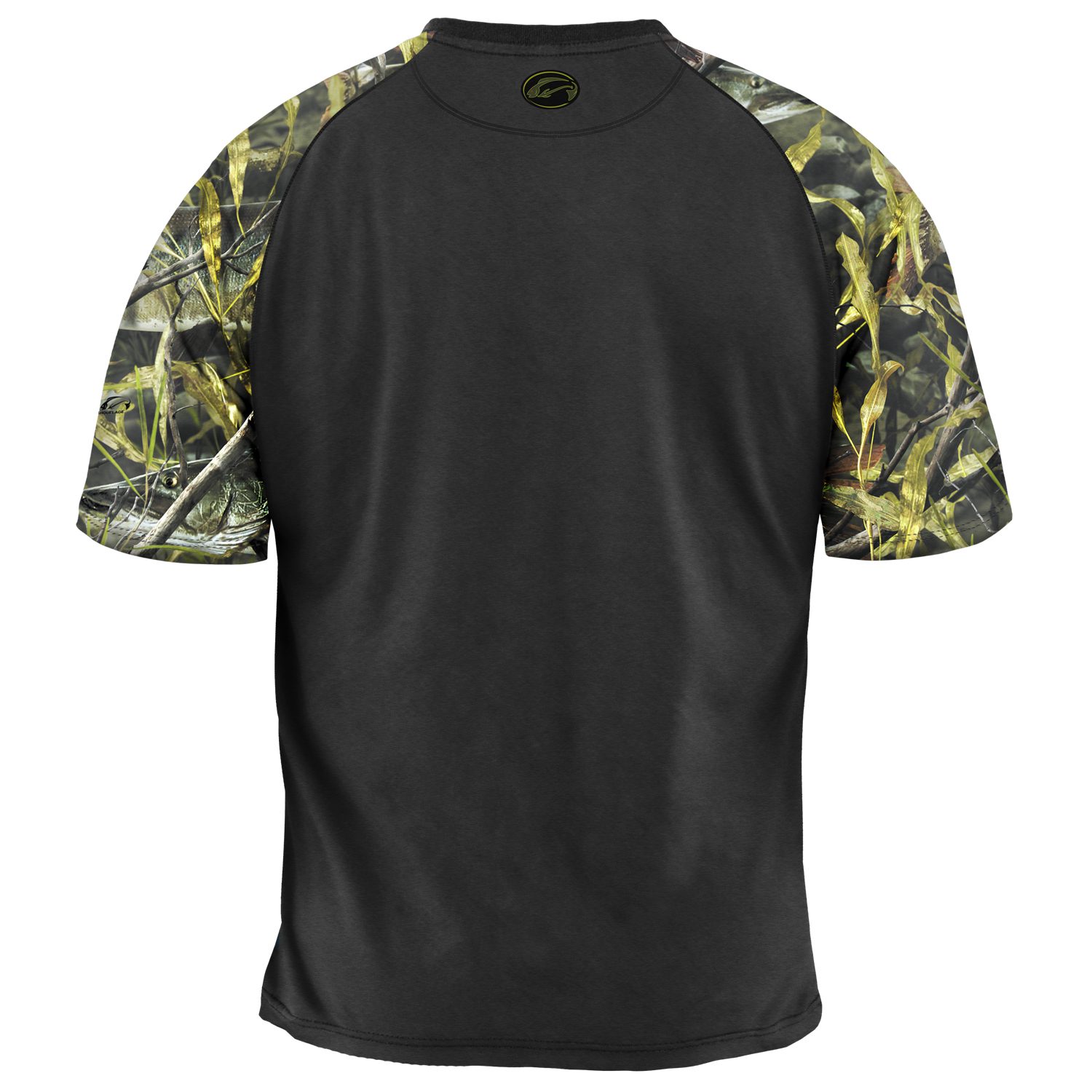 NEW MUSKY STRIKE TEE! Soft and comfortable polyester interlock performance fabric in an outdoorsman-approved, easy-wearing tee. Raglan style sleeves for enhanced freedom of movement, and built to last with double-needle tailoring and self-collar and cuff. Moisture-wicking and anti-microbial fabric with a UPF 40+ sun protection rating. Satisfaction guaranteed. Musky/Black.