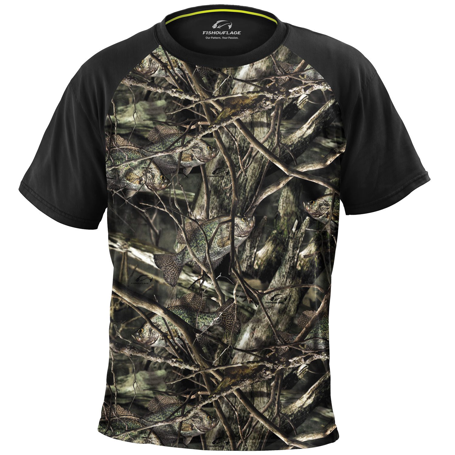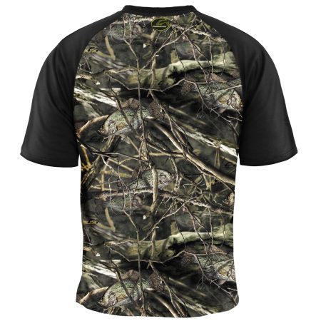 Maximum Crappie. Our Best-Selling Riptide Tees show off the most pattern of our tee collection. Designed in our signature polyester interlock fabric, with raglan-style sleeves for optimal range-of-motion and all day comfort. Easy-wearing and great fitting, with all the fine details: Premium (no-itch) ribbed knit collar, locker panel with fully taped shoulders (strength/durability), and double-needle tailoring throughout. Black/Crappie.